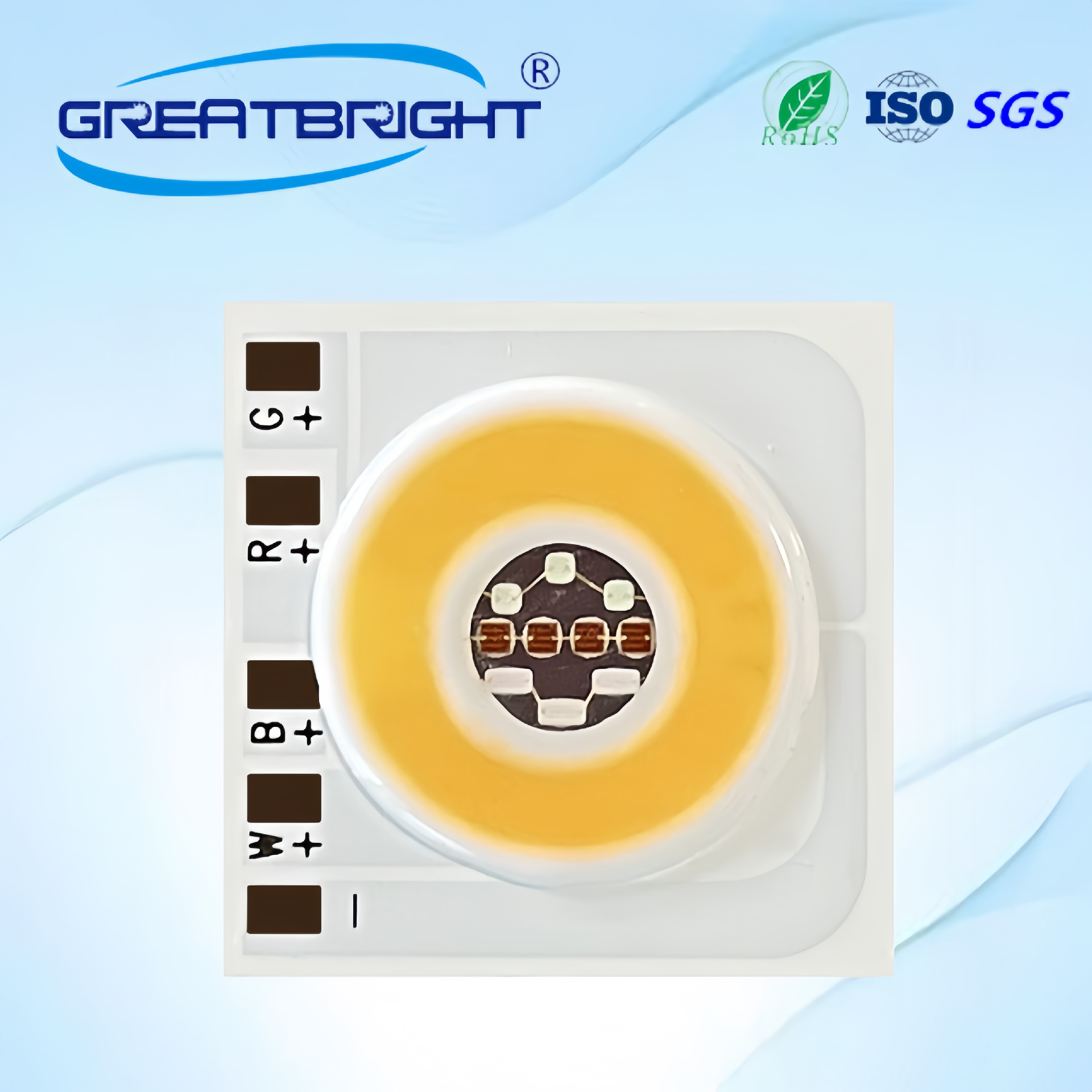 核心特点: 将四种颜色的LED芯片直接封装在一个基板上,实现高密度、高亮度的混光效果,并能发出纯净的白光。